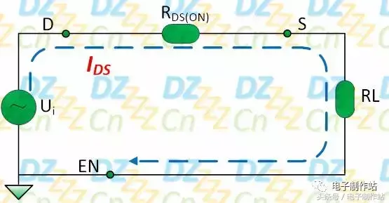 其中,电阻RDS(ON)表示N沟通JFET导通时的漏 - 源导通电阻rDS(on) (Static Drain Source On Resistance ) ,也是模拟开关的通态电阻 RON (”ON” Resistance ) ,此时负载RL两端的电压如下式: