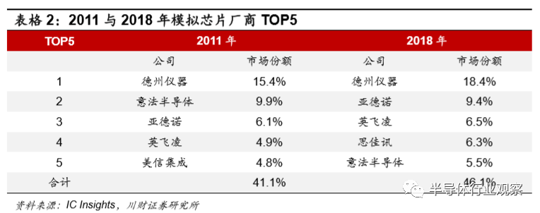 2、模拟芯片市场呈寡头竞争态势
