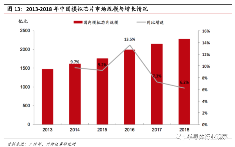 图13: 2013-2018年中国模拟芯片市场规模与增长情况