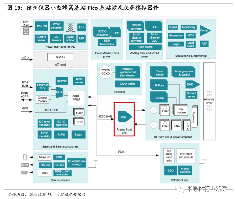 图19:德州仪器小型蜂窝基站Pico基站涉及众多模拟器件