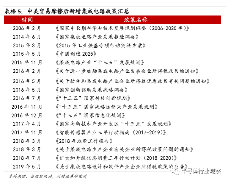 另外,中美贸易摩擦下,集成电路产业政策支持力度进一步加大,构建国产替 代良好政策环境。中央政府与各地方省市都出台了各种支持集成电路产业政策。中美贸易摩擦以来,国家进一步重视集成电路产业,产业基金成立加快行业资 本运作。2019年10月22日,国家集成电路产业投资基金二期注册成立,注册资本2041.5亿元;继大基金二期之后,20家机构发起设立的国家制造业转型升级基金股份有限公司正式成立,注册资本1472亿元。