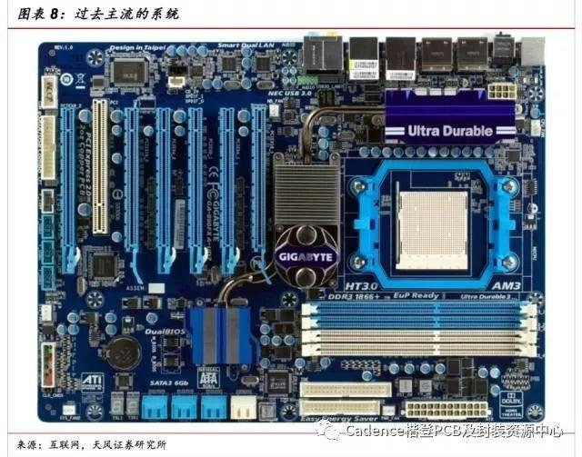SiP是解决系统桎梏的胜负手。把多个半导体芯片和无源器件封装在同一个芯片内,组成一个系统级的芯片,而不再用PCB板来作为承载芯片连接之间的载体,可以解决因为PCB自身的先天不足带来系统性能遇到瓶颈的问题。以处理器和存储芯片举例,因为系统级封装内部走线的密度可以远高于PCB走线密度,从而解决PCB线宽带来的系统瓶颈。举例而言,因为存储器芯片和处理器芯片可以通过穿孔的方式连接在一起,不再受PCB线宽的限制,从而可以实现数据带宽在接口带宽上的提升。