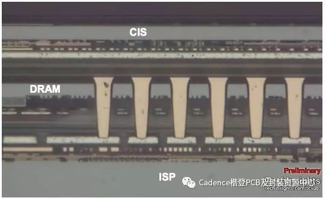 CMOS图像传感器(CIS)的最先进技术不是像过去那样将图像传感器的正面暴露在光线下,而是将图像传感器变薄,使其对光线透明,然后将其翻转到下方的图像传感器处理器(ISP)芯片上,因此不再需要任何TSV。传感器接收到的光穿过变薄的芯片背面。