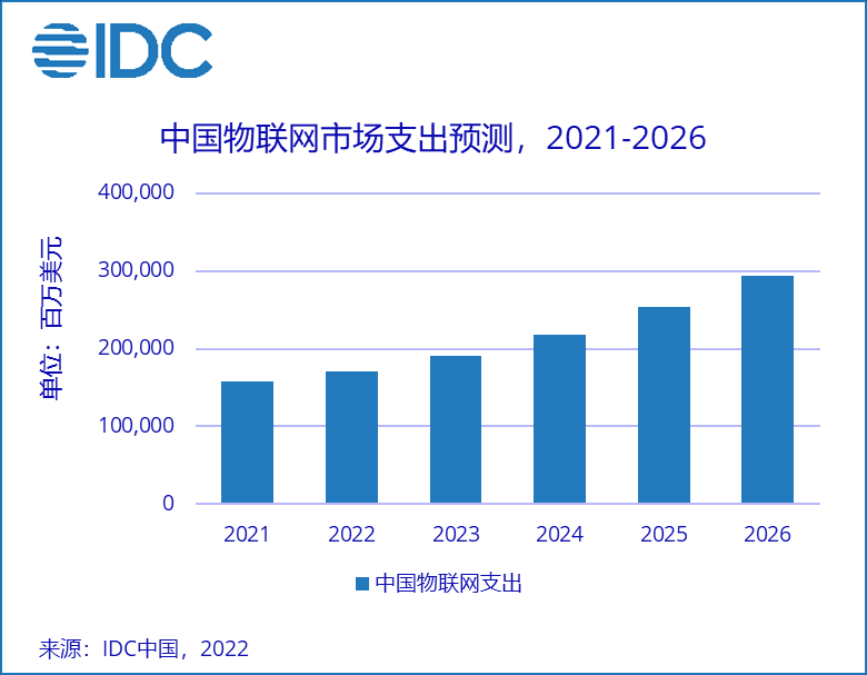 当前,中国作为全球最大的物联网市场,IDC最新预测数据显示,中国物联网企业级市场规模将在2026年达到2,940亿美元,复合增长率(CAGR)13.2%。
