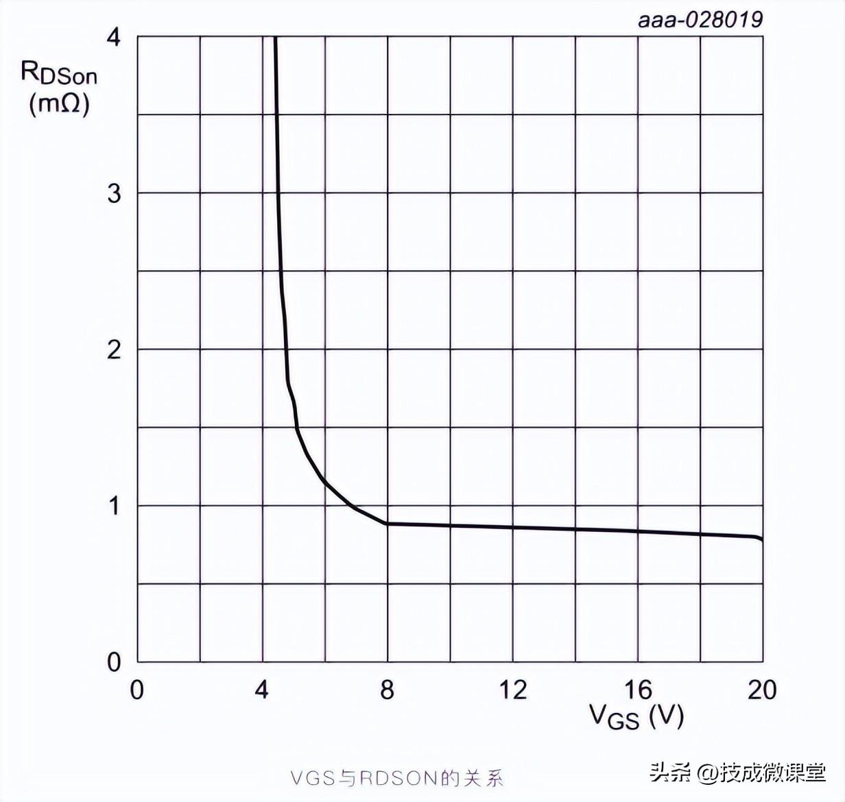 一般情况下,MOS的导通内阻都如上图所示,随着VGS的增大而降低,但VGS大于10V之后,下降曲线变得平缓。为了达到最小的导通电阻(RDSON),VGS的取值通常为10~15V。