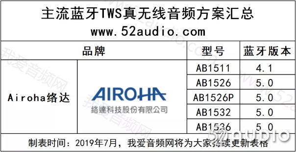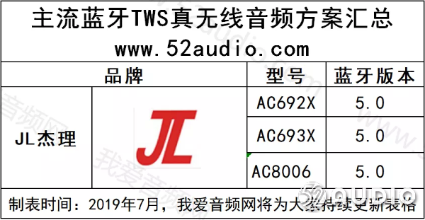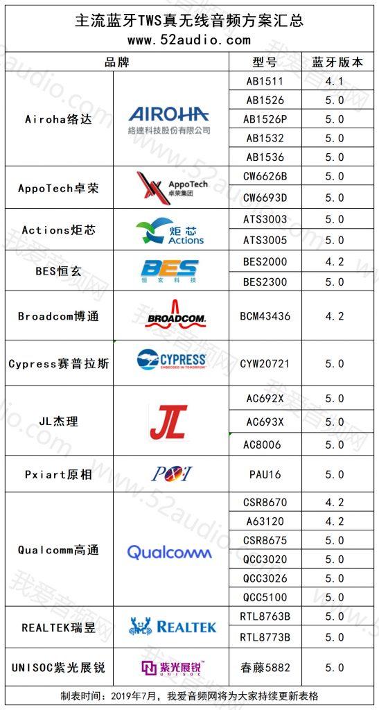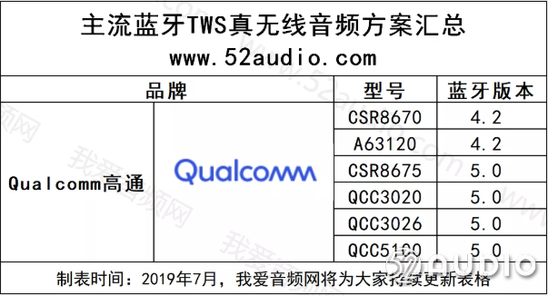 接下来我爱音频网带大家一起了解目前市面上主要几款TWS真无线蓝牙耳机的主控芯片,具体产品型号请参考以下列表(列表、介绍顺序按照由A-Z)。