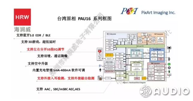 台湾原相针对用户的游戏需求推出PAU16系列TWS真无线蓝牙耳机方案,支持蓝牙5.0 EDR/BLE,支持 AAC、SBC/mSBC、AEC、AES。