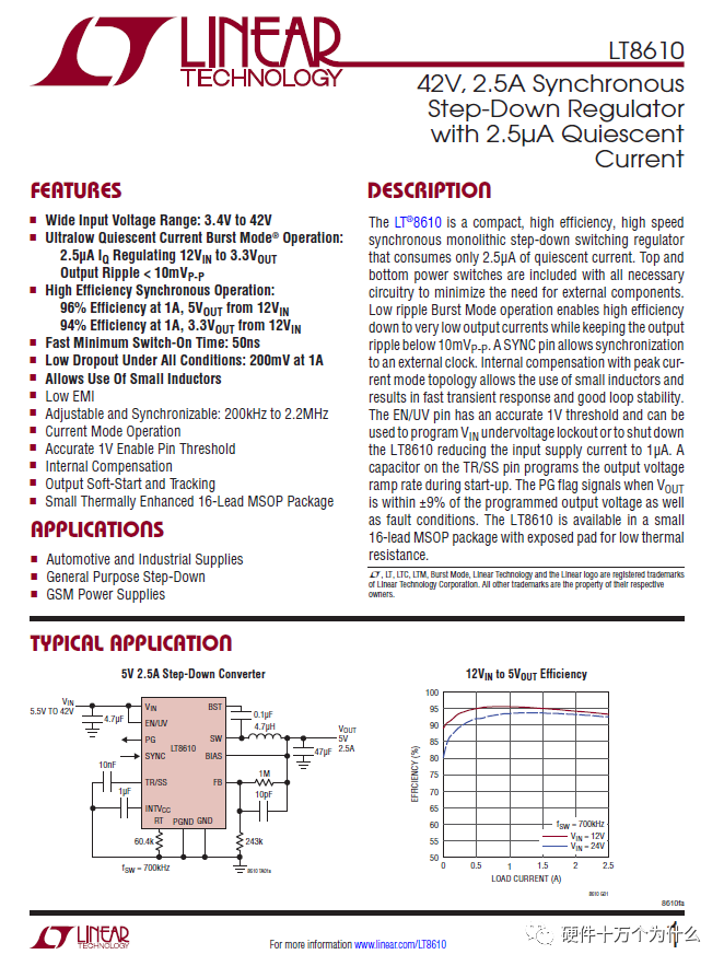 芯片类型和最大卖点:42V,2.5A,step-down, 2.5uA