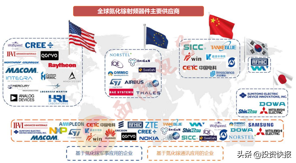目前国际GaN器件主流供应商主要包括住友电工、Wolfspeed、Qorvo以及其他美国,欧洲和亚洲的参与者。三安光电与GCS合作,在GaAs与GaN射频器件的供应领域已经取得了一定的行业地位。三安集成的砷化镓射频器件销量持续增长,出货客户累计至73家,达 270种产品,客户范围已扩展至包括日本、韩国、台湾在内的泛亚太国家和地区;氮化镓射频已给几家客户送样,已实现小批量供货;滤波器产品进入验证阶段,客户反馈初步测试产品性能已优于业界同类产品。