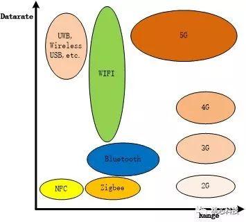 如果我们只关心比较核心的特性,包括速率和距离的话,可以简化一下表示各个无线协议所处的位置,一般说来,目前各种情形已经都有了较为牢固的主力无线协议,新协议产生的空间不多。