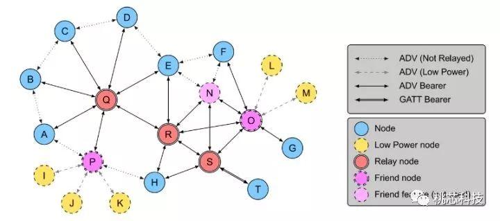 Mesh自组网。自组网mesh技术,可实现多点、大规模网络传输。蓝牙mesh支持不同的节点特性,包括Relay,Friend,以及Low Power等。同时基于5.0特性使得mesh网络的延时减小10倍左右,数据传输量提高多达8倍以上。相比较WIFI和Zigbee的组网,蓝牙mesh在网络规模,网络延迟等方面均具有强大优势。具有proxy功能的节点均可以当做网络的入口,使得mesh网络真正实现去中心化。