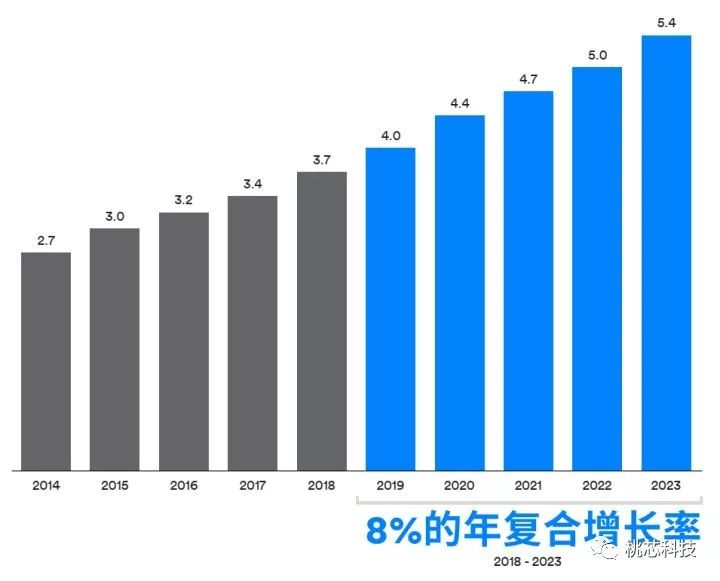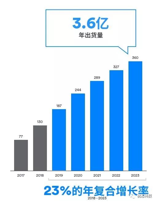 未来蓝牙芯片的出货量也将持续保持非同一般的增长态势。预测2018~2022年复合增长率仍可达8%~12%,低功耗蓝牙增长在20-30%,2022年蓝牙设备整体出货量达 52亿颗以上。未来几年,蓝牙设备每年净增4亿台,目前应该没有哪种芯片能以如此规模增长,应当密切关注。