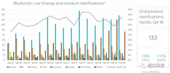 从Nordic发布的新案例数量来看,Nordic也是在BLE细分市场的龙头企业,同时我们也看到新的应用每年也都在稳步的增长。