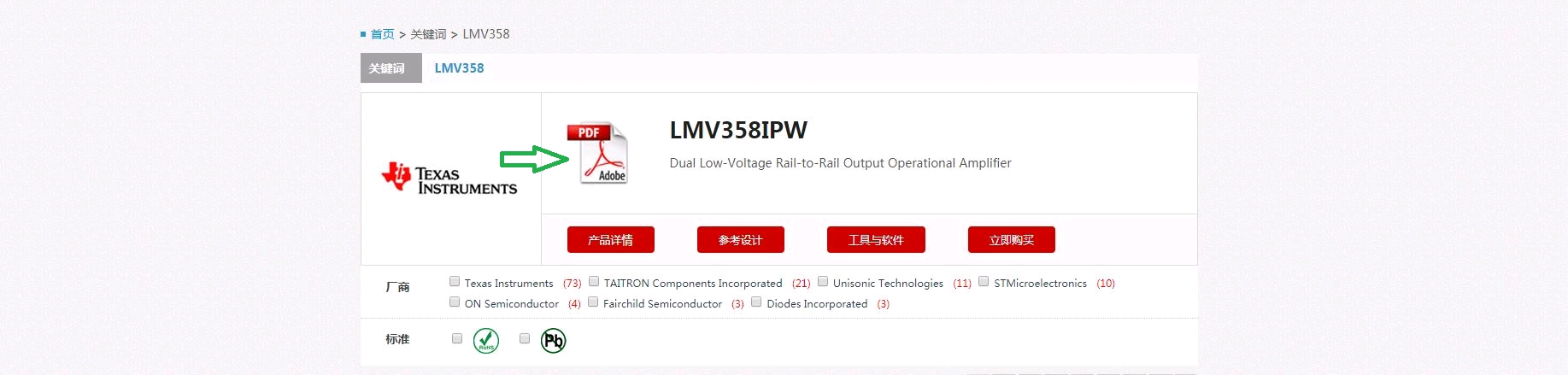 输入查询芯片的型号,会跳出芯片查询的的结果,点击图片屏幕箭头PDF,就可以查看下载啦。