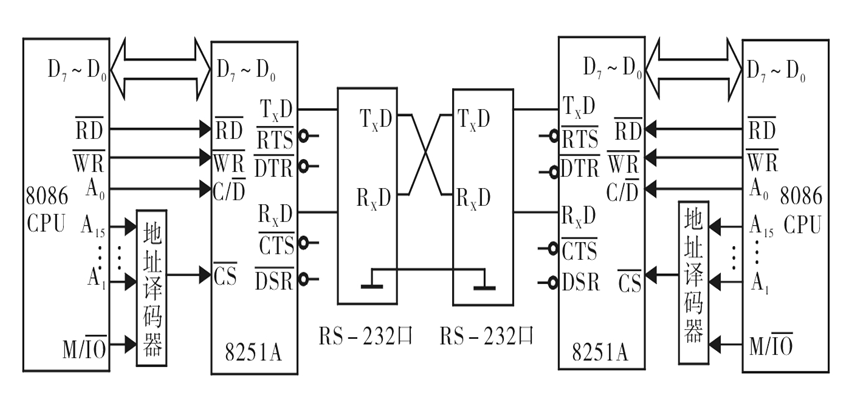 上图是进行通信的两块8251连接图: