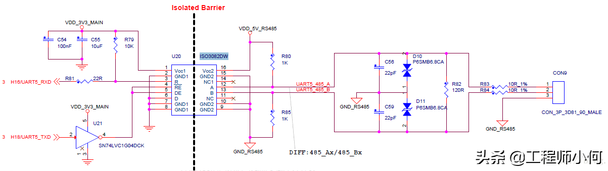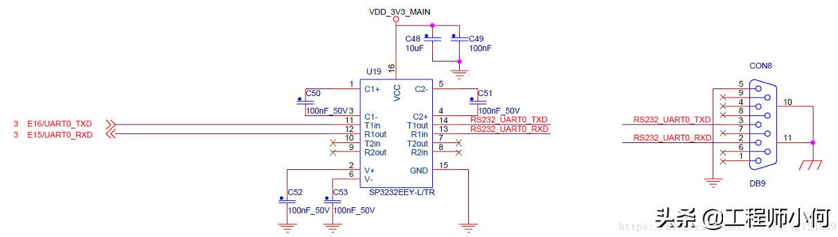 而由于各自使用的电平有所不同,因此由UART转换为RS-232、RS422或RS-485时,需要经过一个SP3232E、SP3485(或则其他转换芯片)。
