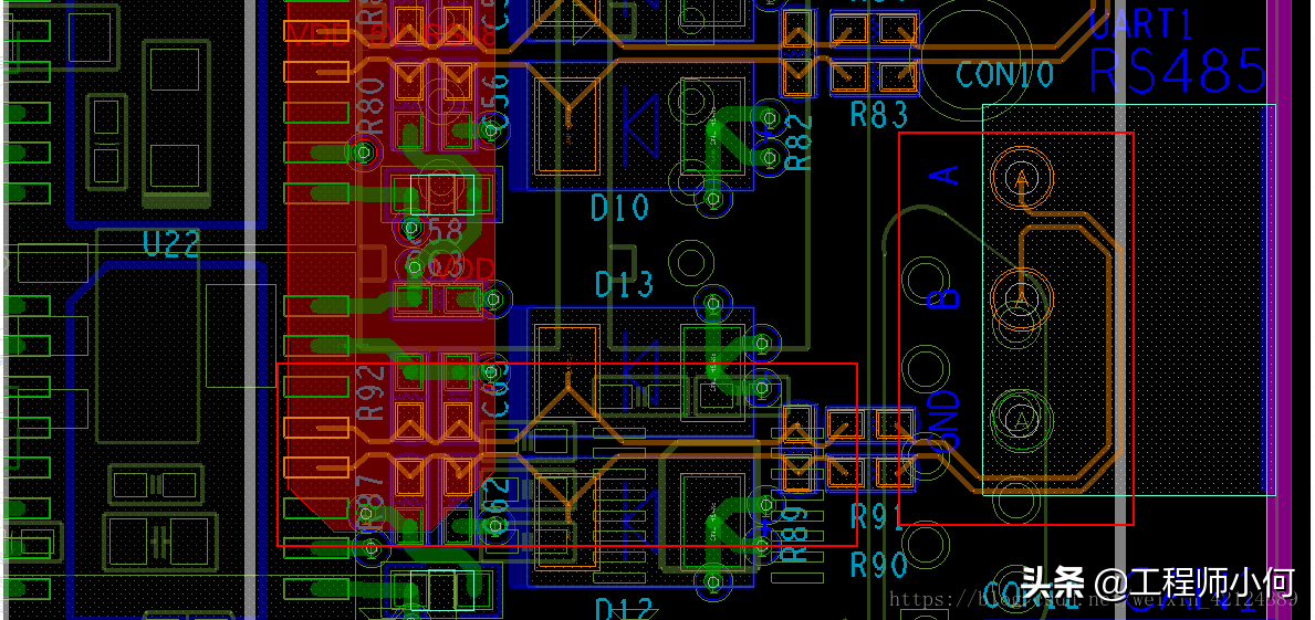注意485的两条信号线需要做差分等长,因此RS-485/RS-422有较好的抗噪声干扰性;