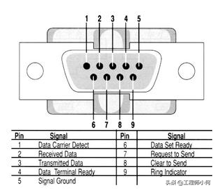 下图是DB9公头和母头的定义,一般用的最多的是RXD、TXD、GND三个信号。