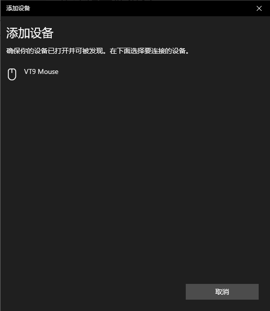 3、在设备的蓝牙列表中选择“VT9MOUSE”完成配对并连接,鼠标的指示灯熄灭。