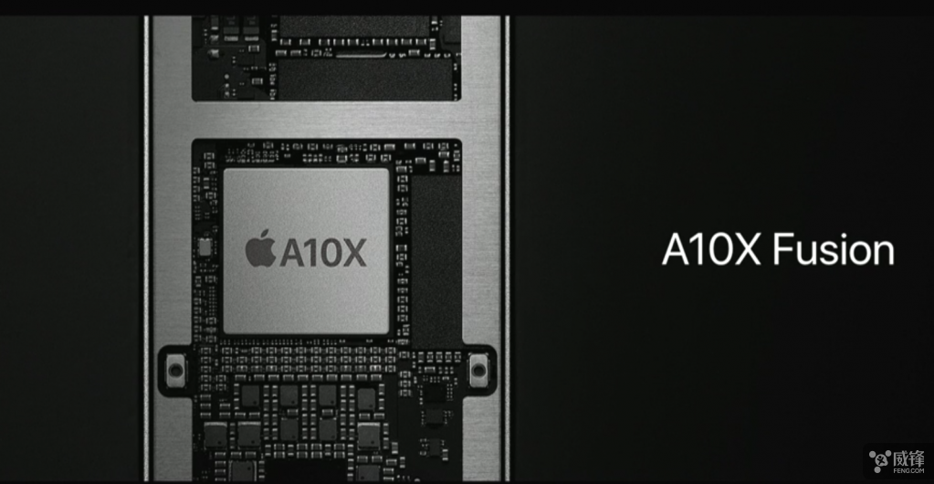 A10X是苹果第一款六核心芯片。这款芯片首次使用了台积电的10nm工艺,面积为96.4平方毫米,相比使用16nm工艺的A9X芯片小了大概三分之一。A10X芯片使用了3个Fusion核心,相比上一代A9X的2个更多,而且使用了新款内核,功耗也比之前的A9X更低。同时使用了8MB的二级缓存,比A9X的3MB多了一倍多。