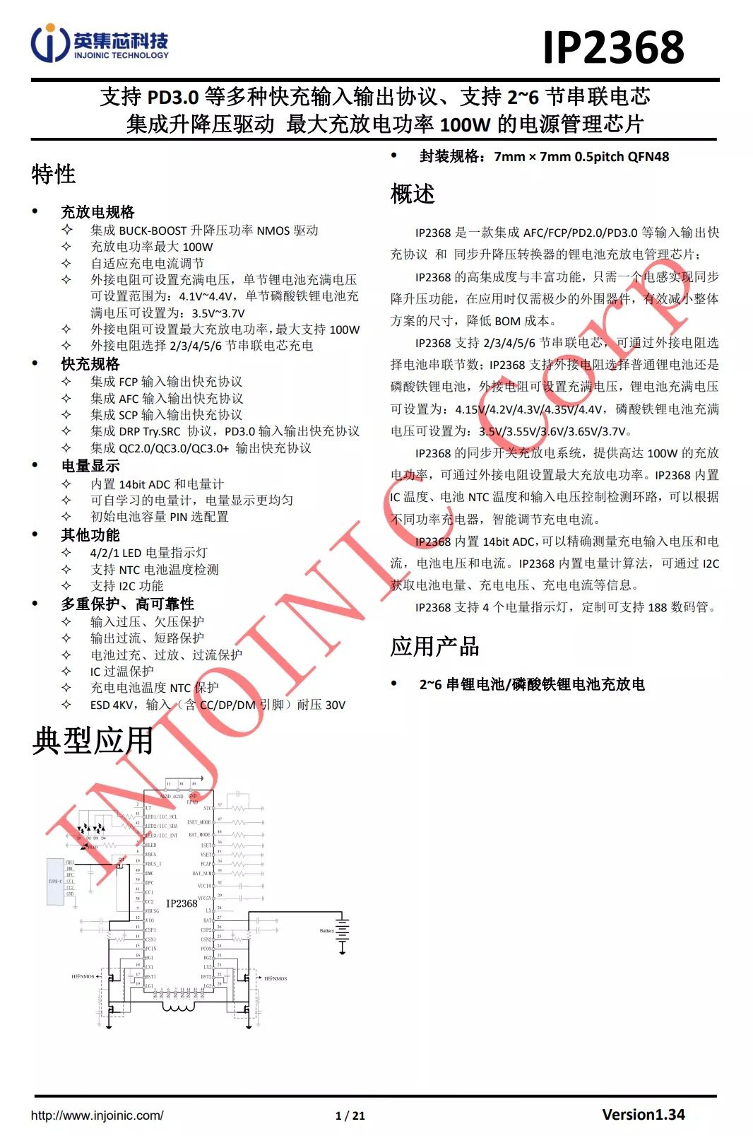 英集芯IP2368是一款内置PD3.0快充协议,支持双向输入输出,支持2-6串电池组充电,具备100W输出功率的升降压控制器。芯片内部集成四管H桥驱动,集成协议功能,外围电路精简,应用简单。