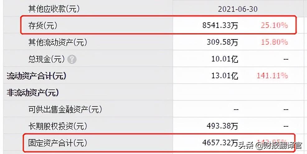 2021年二季度,公司的存货增加了25%,固定资产增加了143%。
