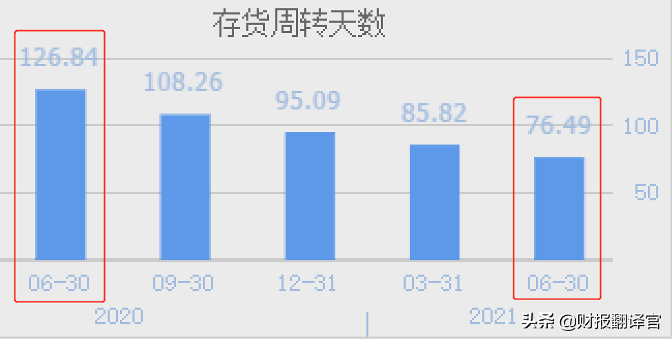 销售速度用存货周转天数来表示,2020年二季度,公司销售一批存货需要127天的时间。现在只需要76天 ,速度加快了40%。