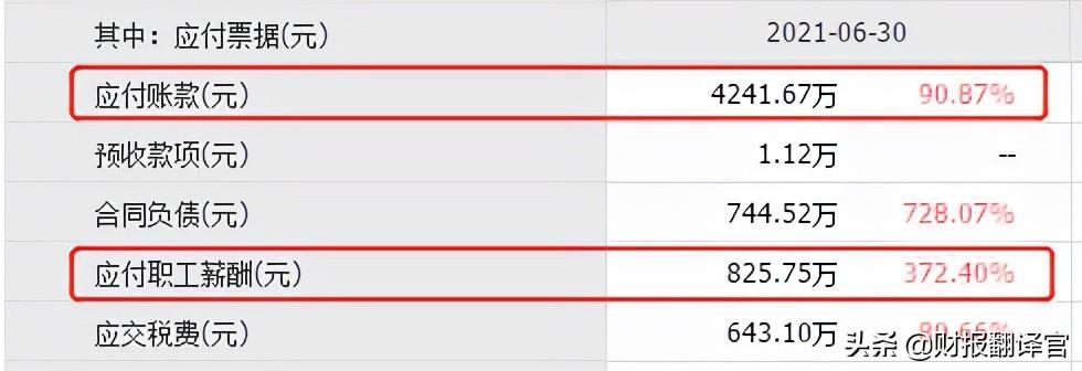 在该企业二季度的资产负债表中,翻译官发现公司的应付账款增加了99%,应付职工薪酬增加了372%。