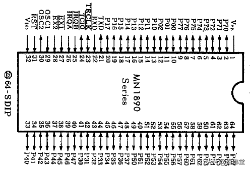 3、CPU芯片-MN18992MDY-6塑封双列直插,64引脚,用于松下早期DV551、DV561机型: