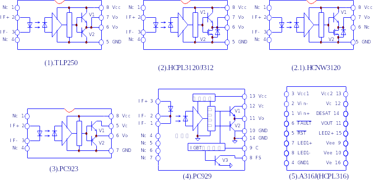 TLP250和HCPL3120可直接代换,将输出引脚改动一下,也可与PC923相代换。PC923、PC923往往配套使用,而A4504和MC33153也是配套使用的,两者组合完成了PC929的功能。