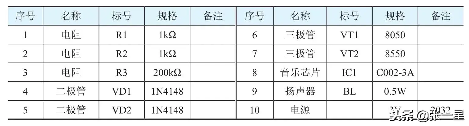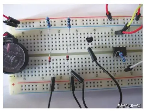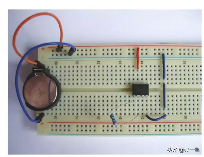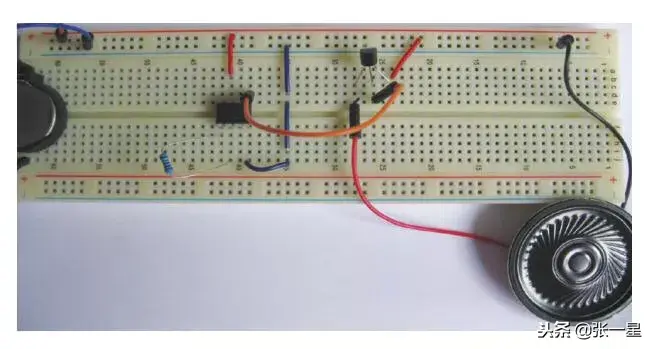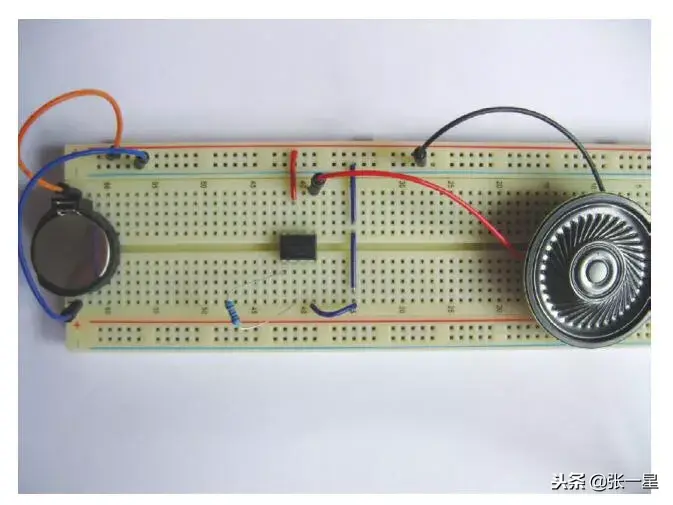 电路是非常简单的,尝试不提供电路图直接在面包板上制作。音乐芯片供电以及振荡电阻接入电路,