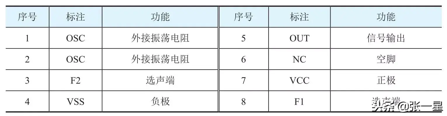 芯片也可以称为集成块,今天给大家介绍的芯片型号是C002-3A,如图所示,根据选声引脚所接高低电平不同,能发出110/119/120等不同的声音。