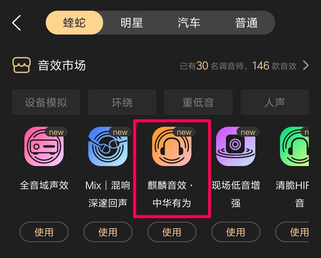 备注显示,该音效其他芯片也可使用,但对海思麒麟有特殊优化。