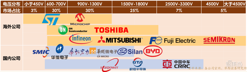 中国大陆具备完整功率半导体产业链;IDM 和Fabless+Foundry 模式皆有 , 上下游协同进口替代 。以IGBT为例,国内IDM企业包括华润微、比亚迪、华微电子等;Fabless企业包括斯达半导、中国北车等;Foundry有中芯国际、华虹宏力等,OSAT封测有华天科技、长电科技等。
