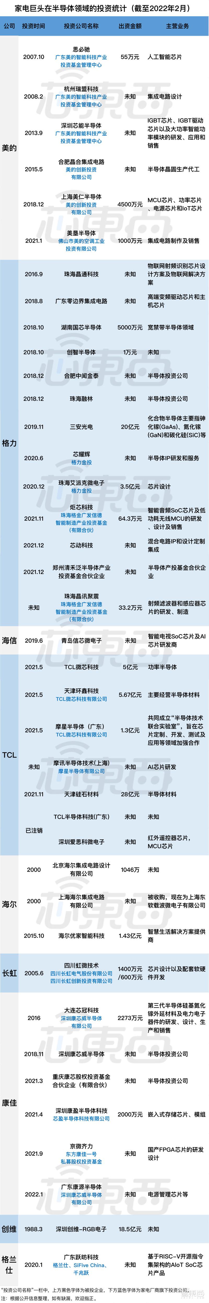 除了下设部门、成立子公司之外,许多家电巨头也将目光转向投资国内芯片公司。
