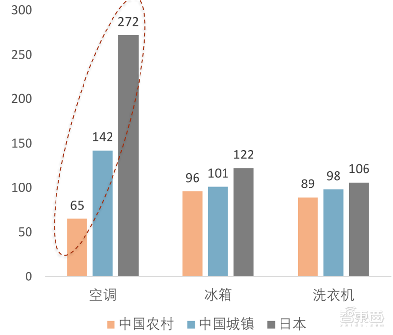 中国大陆、日本白色家电保有量对比(台):国内尚有成长空间