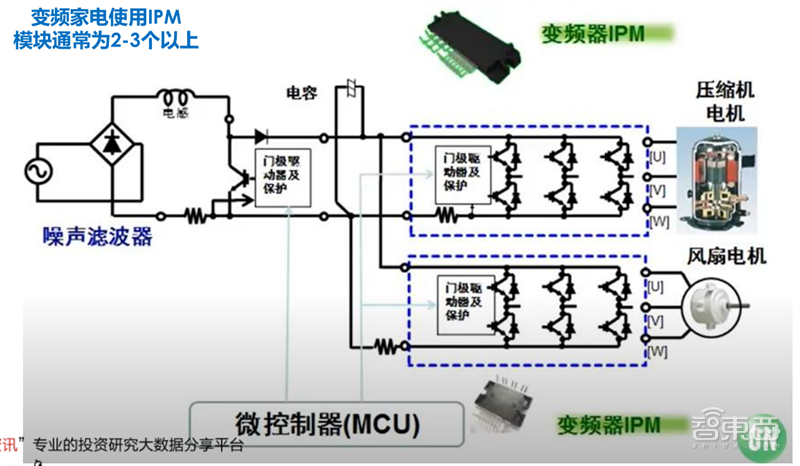 IPM模组用量同步变频电机数量提升,以空调变频器为例
