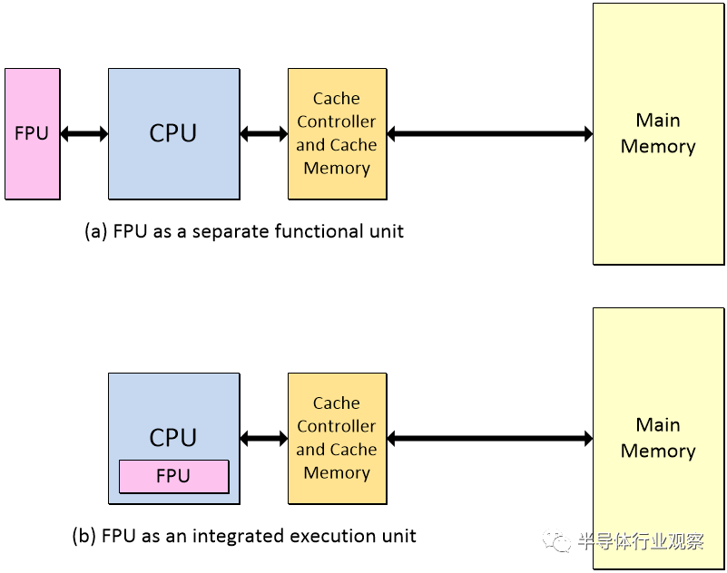 FPU作为一个单独的功能单元来实现是很常见的,但将一个或多个FPU集成为CPU中的特殊执行单元也并不少见。