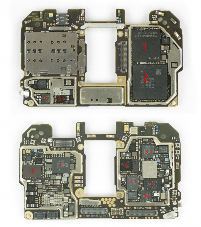 相信小伙伴和小编一样,自己是没有本事完完整整地将一台最新的手机拆解还原的(只拆不装没问题,但是老编不愿意)。所以我们就以拆机大神的两个手机拆解图来认识一下手机的主要芯片吧。