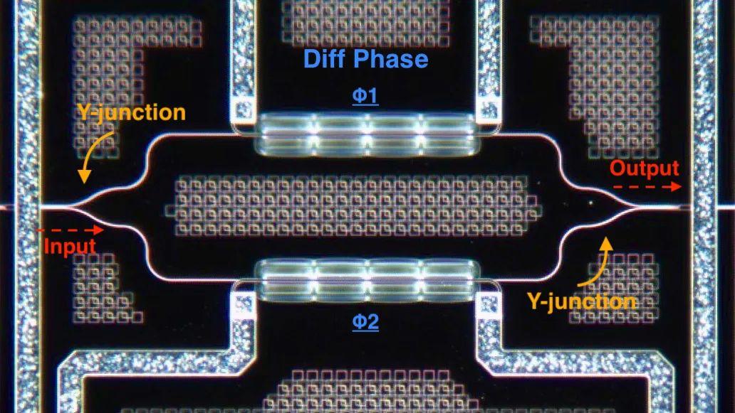 图 | 集成在芯片中的单个 MZI 实物图。基于目前的科技水平和制造工艺,已经可以做到在一个芯片上集成数万个这种光学设备。并且由于它的生产过程可以重用 CMOS 电子设备的技术,所以价格也相当低廉。(来源:曦智科技)