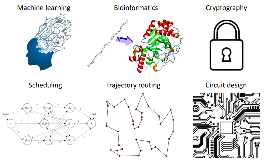 图 | 光子计算机擅长的领域:机器学习、生物信息学、密码学、排程问题、车辆路径问题、电路设计等。