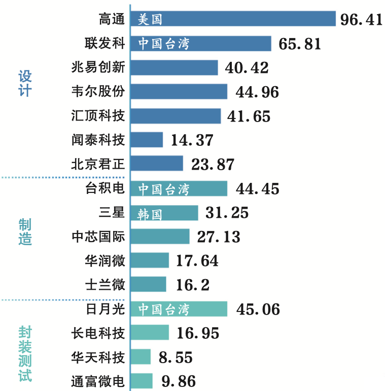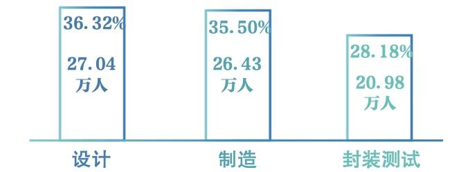 从结构上看,我国芯片从业人员的结构分布正在发生调整。根据人才白皮书分析,我国芯片行业人才结构逐渐形成设计业和制造业“前中端重”、封装测试业“后端轻”的趋势。到 2022 年前后,设计环节人才将达到27.04 万人,制造环节26.43 万人,封装测试环节20.98 万人。