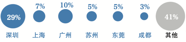 市场供需报告同样显示,集成电路/半导体行业招聘岗位工作地,排名前五的城市分别是深圳、广州、上海、苏州和东莞。其中,珠三角城市占据三席。
