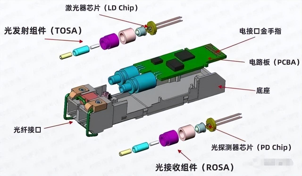 光模块说白了,就是买来内核零部件和其他配件,比如光芯片,再通过工艺组装起来,实现完整功能。