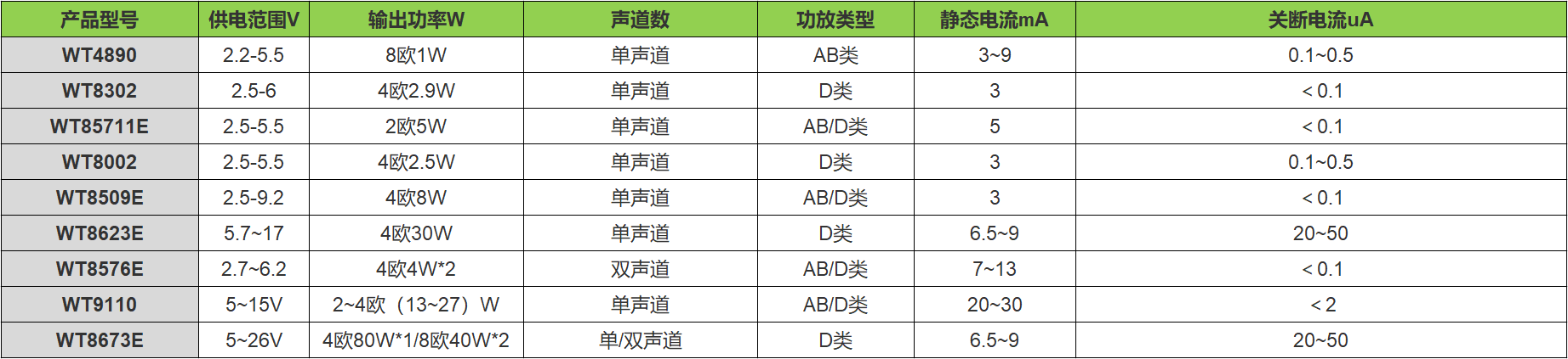 功放芯片选型表