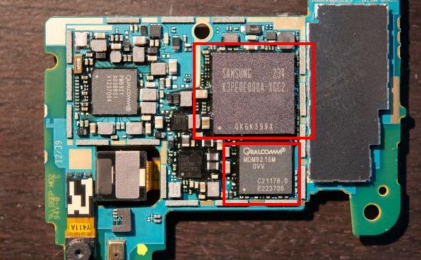 我们以图来说明,大家是否能够看清基带在SoC里面占据了多大空间?或者我们再来看看外挂基带基带所占据的面积。(大红框内为SoC,外挂的基带为下面的小红框)