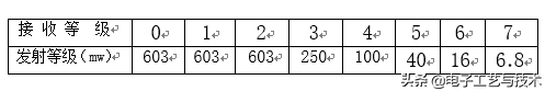 所谓功率等级就是工程师们在手机编程时把接收信号分为八个等级,每个接收等级对应一级发射功率(如下表),手机在工作时,CPU根据接的信号强度来判断手机与基站距离远近,送出适当的发射等级信号,从而来决定功放的放大量(即接收强时,发射就弱)。