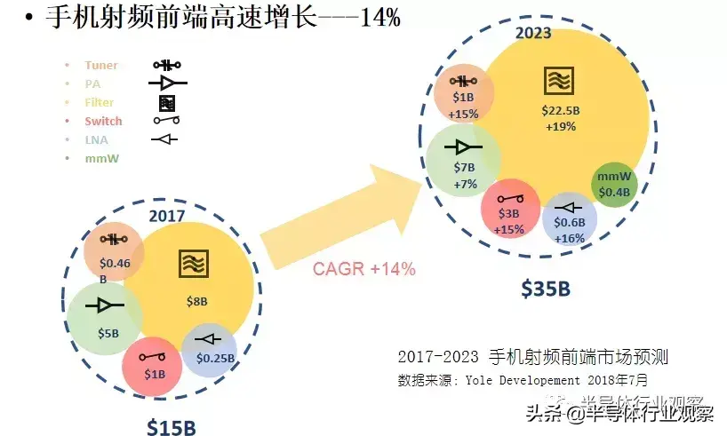 2017-2023手机射频前端市场预测(source:Yole Development)
