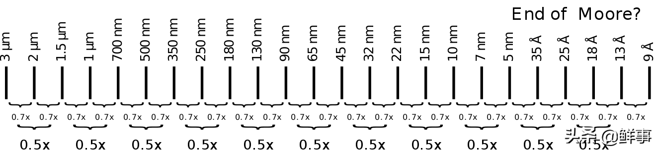 如果不谈论摩尔定律,就无法提及纳米和晶体管密度。简而言之,摩尔定律预言了加工技术的持续改进水平。通常将芯片收缩的速度与摩尔的预测进行比较,以衡量技术进步是否在放缓。摩尔定律是一项古老的观察,观察到芯片上的晶体管数量每年都会翻番,而成本却减半,这种情况已经维持了很长时间,但是最近一直在放缓。