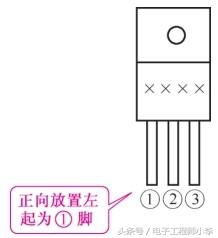 图3-34所示是三端稳压集成电路引脚分布规律示意图。这种集成电路只有3根引脚,其引脚功能分别是:直流电压输入引脚①、直流电压输出引脚③和接地引脚②,将集成电路正向放置,左起为①脚,自左向右为各引脚。